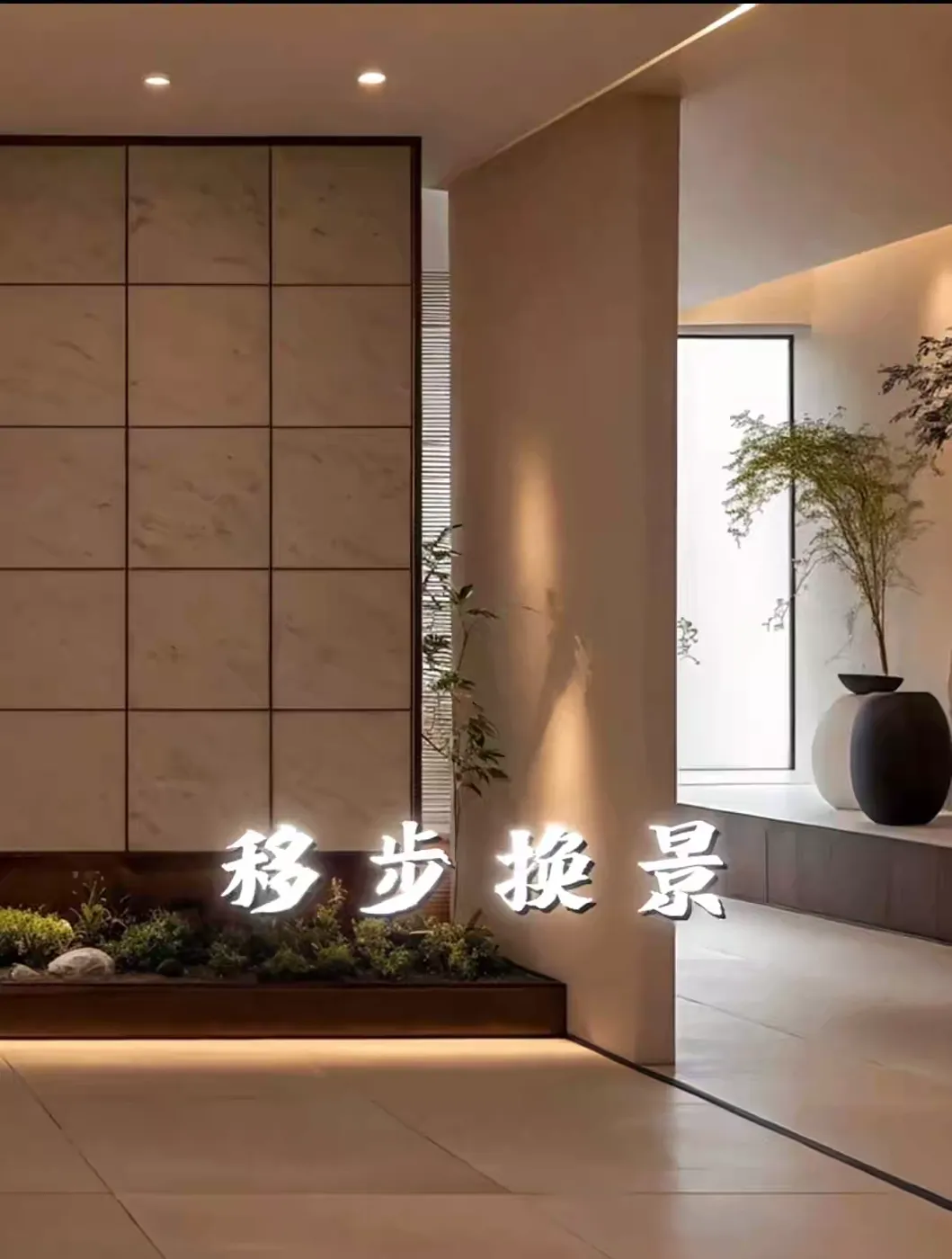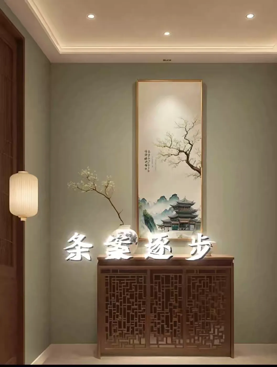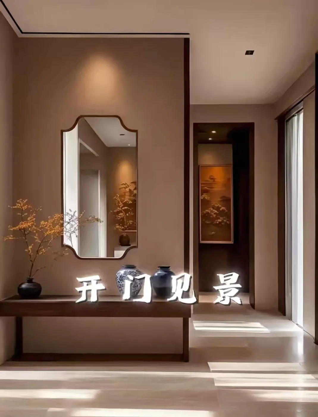 宋代美学的底色,藏在宋徽宗的《千里江山图》里,更藏在 "雨过天青云破处" 的克制里。宋代玄关的色彩体系,是对自然光谱的温柔截取 —— 墙面多取米白、竹褐、天青等低饱和度色调,如同宋人茶盏上的冰裂纹,在光影变幻中显露出微妙层次。苏州博物馆新馆的玄关设计便深得其妙:浅灰色石材地面呼应 "石质冷峻",米白色墙面留白如宣纸,几枝墨竹斜倚花器,将宋代水墨画的 "计白当黑" 化作空间语言。