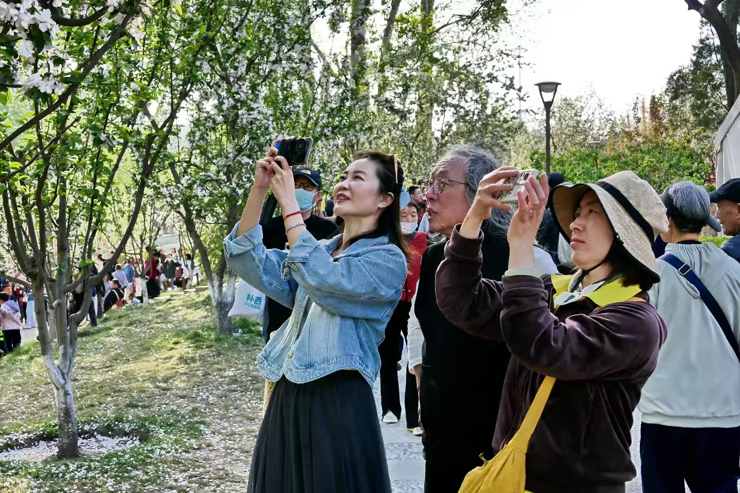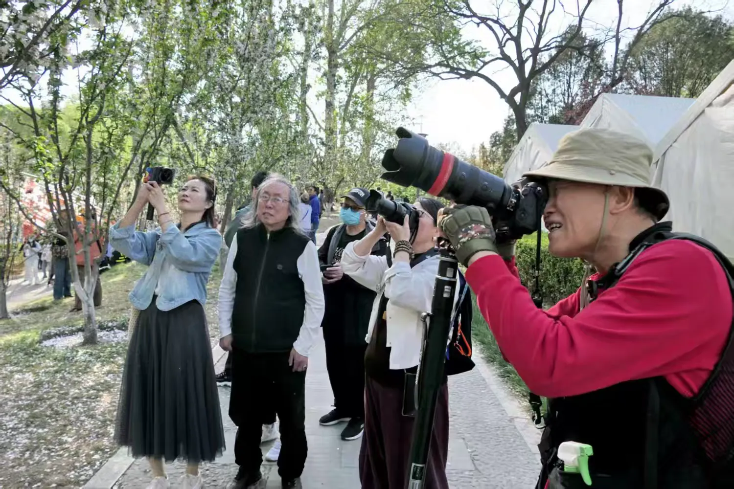 拍摄过程中,会员们相互交流拍摄技巧,分享构图心得,在实践中提升摄影水平。大家充分利用园区的景观优势,既有对海棠新优品种的细节捕捉,也有对“大都驿·站赤”“星空时光隧道”等特色打卡点的全景呈现,更有模特与海棠、古垣相映的人像创作,每一张作品都承载着会员们对春日的热爱与对摄影艺术的追求。此次活动不仅为会员们提供了实战交流的平台,更以摄影为载体,传播了元大都海棠花溪的生态之美与历史底蕴,助力“花开北京”文化品牌的传播。