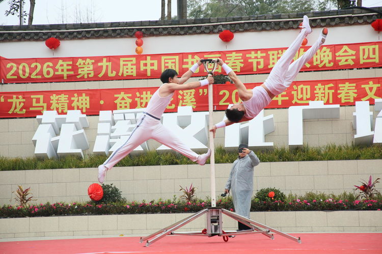鼓点铿锵启新程,龙舞翩跹庆新春。活动在“龙腾堰上、快马花溪”主题舞龙表演中正式拉开帷幕,金黄长龙伴随着欢快的鼓点腾跃翻转、灵动穿梭,时而昂首摆尾,时而盘旋嬉戏,将“龙马精神”的昂扬姿态展现得淋漓尽致,瞬间点燃了现场的喜庆氛围,台下掌声、欢呼声此起彼伏,尽显新春佳节的热闹景象。