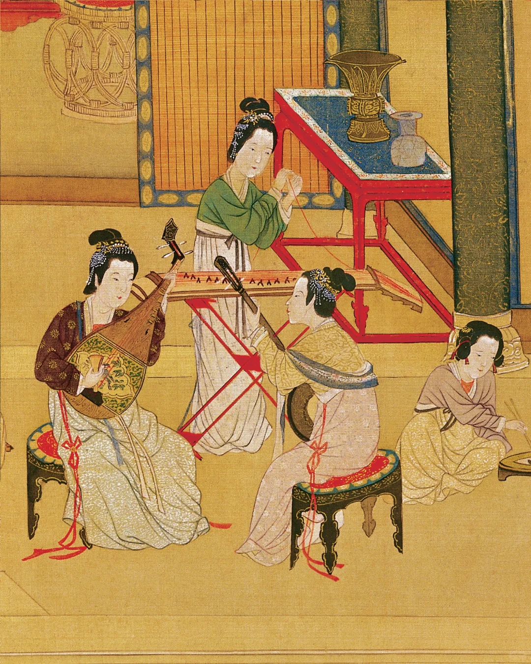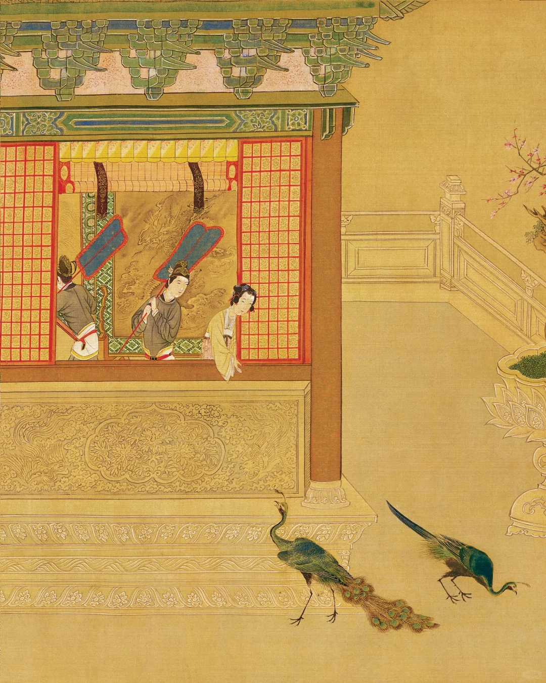 《汉宫春晓图》是明代画家仇英的代表作之一。这幅长卷以汉宫春晓为主题,描绘了宫廷中的各种生活场景。画家以细腻的笔触和丰富的色彩,展现了宫廷中的人物、建筑、花卉等,画面生动逼真,富有生活气息。作品中的人物造型优美,服饰华丽,展现了明代宫廷的奢华与繁荣。同时,画家通过巧妙的构图和细腻的笔触,营造出一种和谐、宁静的氛围,体现了明代中式美学追求自然、和谐的特点。