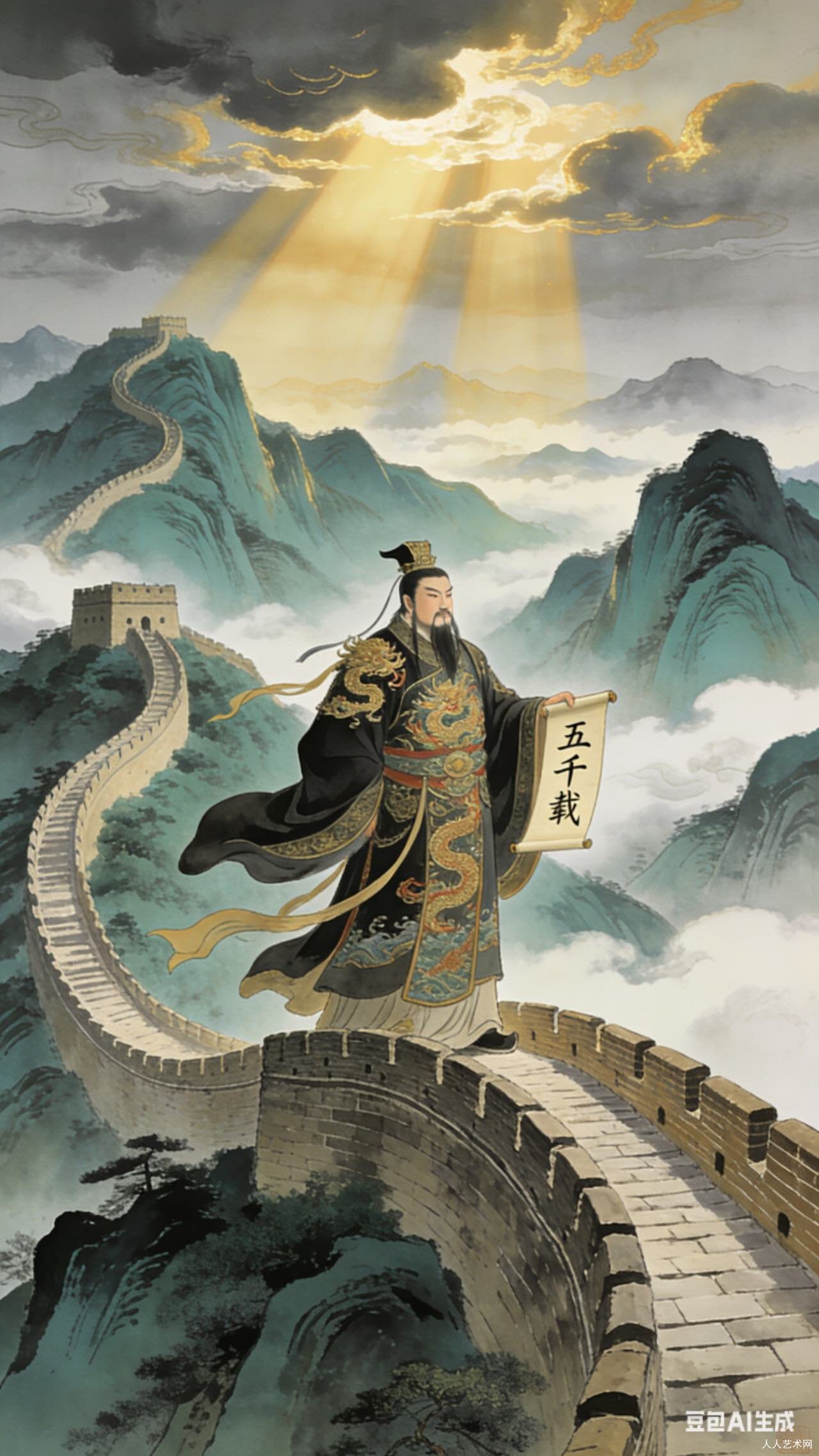 《水龙吟·五千载》格律谨严,气韵沉雄,以极简笔墨囊括华夏五千年沧桑。上片自盘古开天、神农尝草起笔,叙涿鹿定邦、大禹铸鼎、甲骨传文,再写诸侯争霸、秦皇一统,脉络清晰,意象雄健。下片续接垓下之叹、司马著史、三分天下,历数隋唐宋元明清兴衰更替,笔力跌宕,尽显历史厚重。全词选材精当,叙事紧凑,无浮辞赘语,将朝代更迭与人间沧桑熔于一阕。结尾以江水发问,寄慨悠远,既有对历史兴亡的慨叹,亦含对文明传承的深思。通篇豪放苍凉,开合有度,史实与词情相融,意境雄浑,颇具咏史词之风骨与格局。