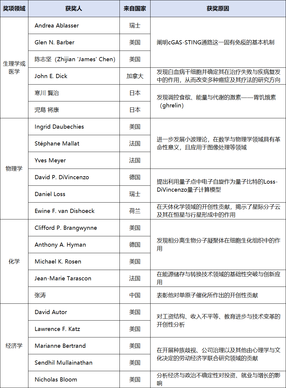 诺贝尔奖的预测通常会参考一些被誉为“诺奖风向标”的国际科学奖项,今年已颁发的“诺奖风向标”奖项梳理如下: