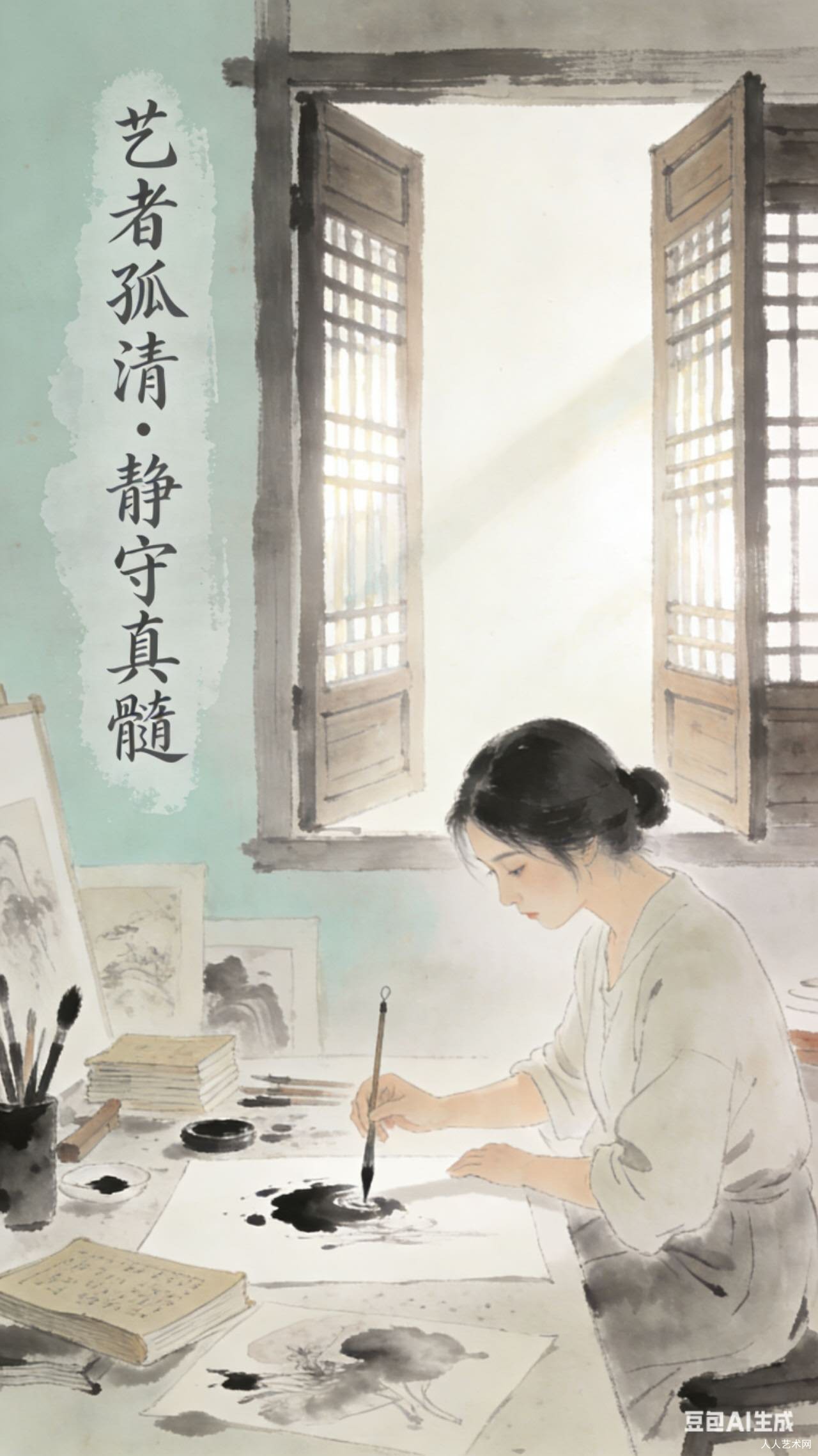 此词以浅语写深心,道尽从艺者的修行境界。世人多畏惧孤独、贪恋热闹,而真正奔赴艺术的人,甘愿远离喧嚣,于寂静中潜心打磨,与自我对话。这份孤独并非被世界遗忘,而是被时光慢慢雕琢、淬炼。没有掌声与浮华,唯有沉心坚守、反复磨砺。词人写尽静中修为,阐明艺术真正成就的,是独处时依然清醒自持、内心丰盈的力量。全词质朴沉静,无一字虚浮,道破艺道真谛:守得清净,方能神思圆满,抵达艺术与心性的至高境界。