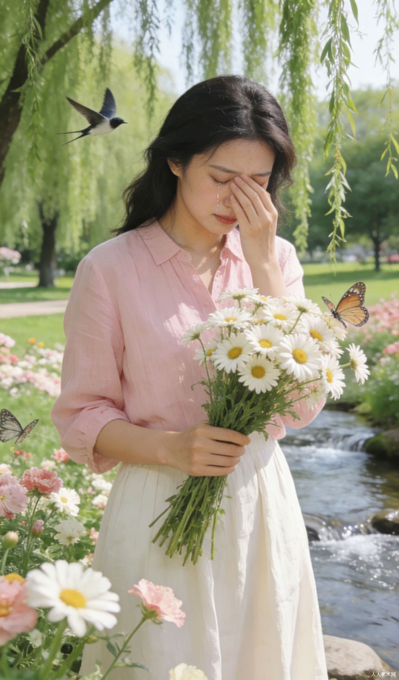 燕蝶寻芳,枝头悄立,满目寒痕如织。