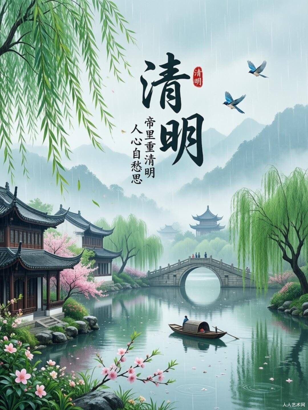 这首《阮郎归·春怀》借清明春景抒深切思念。暖风拂柔柳枝,春光漫满楼阁,檐间新绿萌发,反倒勾起心底闲愁,满腔相思皆倾入酒盏。天边流云舒展,弯月如钩,梨花沾着细雨零落流淌,晕开绵软愁绪。恰逢清明时节,故人相伴同游的旧事涌上心头,往日欢愉愈发衬得今朝孤寂。末句以星光映照白头收束,将绵长牵挂藏于星河月色里,把春日景致、往昔温情与余生惦念相融,道尽离别后岁岁怀人、深情不减,任由思念随春景漫延心底的绵长情愫。