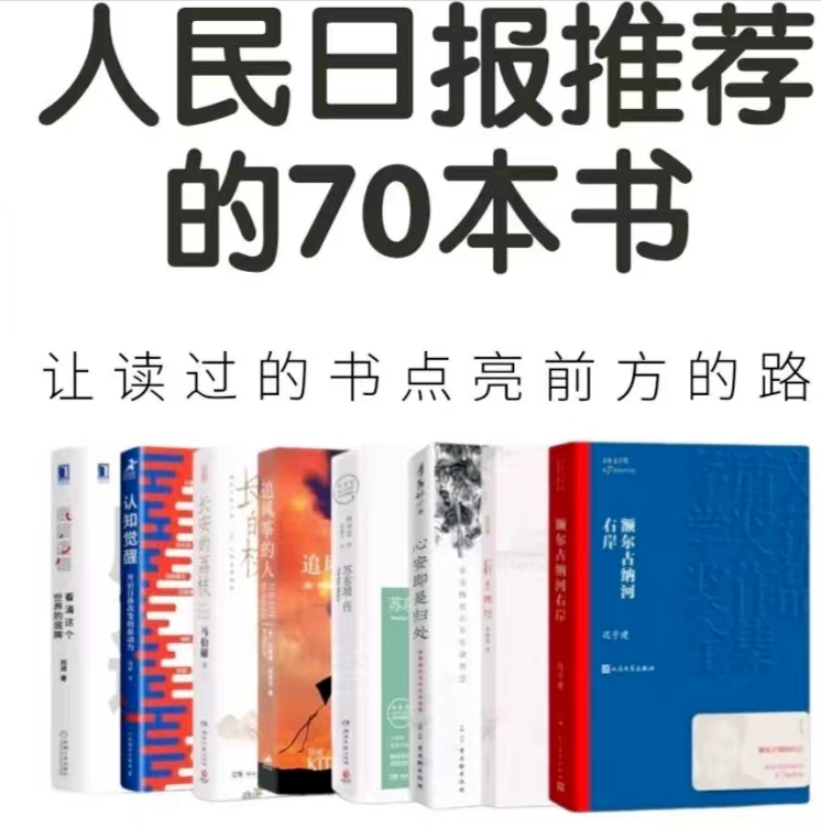 网上《人民日报》推荐的必读书籍有70本,涵盖了文学(世界和中国)、散文、认知思维、人物励志和历史人文等方面,算比较详细和全面了。
