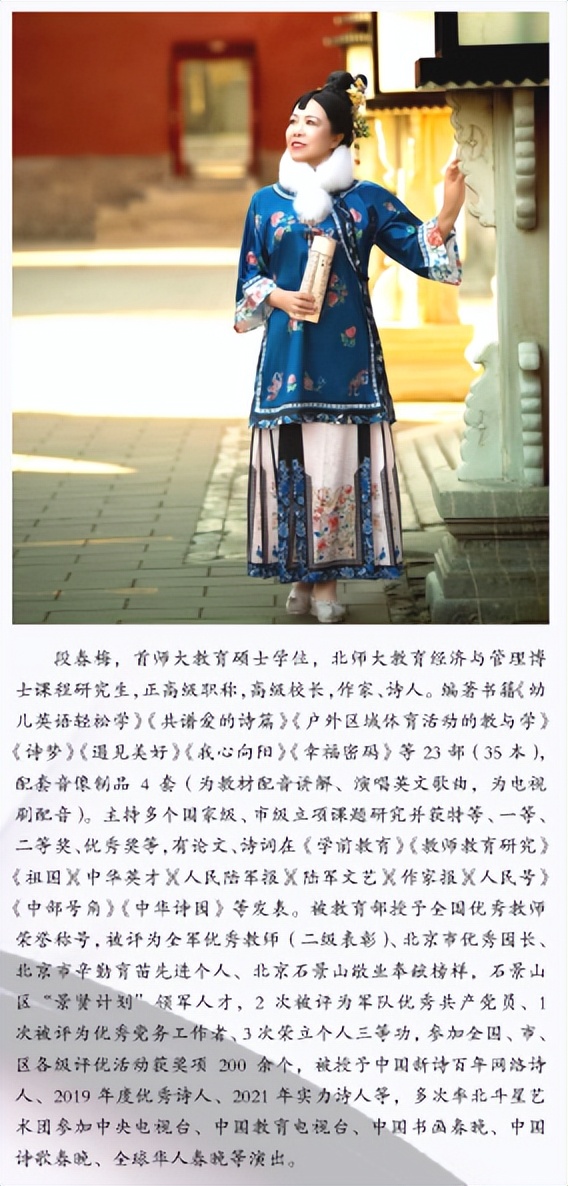 捧读段春梅新选《澜韵集》书稿时,窗外正飘着细碎的晨光,恰如书中字里行间流淌的教育温度,不炽热灼人,却温润绵长的漫漫长路。能为段春梅园长的新著作序于我而言,既是荣幸,更像是一场与教育初心的重逢。初识段园长,是在“作者面对面”的现场,段春梅身着素雅的正装,言谈间没有华丽的辞藻,却字字紧扣“幼儿为本”的核心,从党建品牌到师资培养,从文化建设到家园共育,从专业探索到诗歌创作,每一个观点都扎根于数十年的实践土壤,既透着学者的严谨,又藏着教育者的温情。后来深入了解才知这位深耕幼教领域的园长,早已将“守护童年、滋养成长”的信念,刻进了职业生涯的每一个年轮。作为北京军区机关幼儿园的掌舵人,段园长肩上扛着双重责任:既要传承军队办园的严谨作风,又要紧跟时代步伐,探索符合当代幼儿发展需求的教育路径。在段园长的带领下,这所军队的幼儿园没有陷入“重知识灌输、轻习惯养成”的误区,而是始终坚守“游戏是基本活动”的教育规律,让孩子们在涂鸦中释放创造力,在奔跑中强健体魄,在交往中学会共情。家长们常说,这里的孩子眼神里有光,那是被尊重、被理解、被珍视的模样,这或许就是对段园长教育理念最生动的注解。